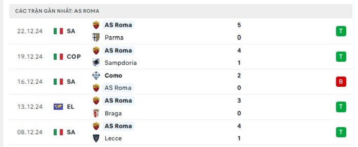 - Phong độ AS Roma