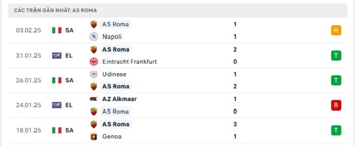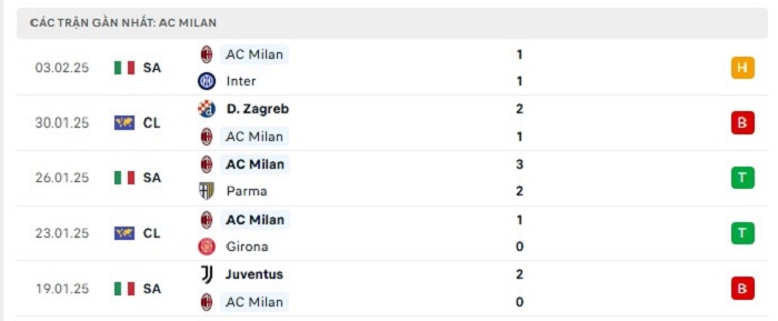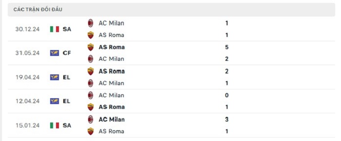 Bảng bóng đá trận đấu AC Milan vs AS Roma