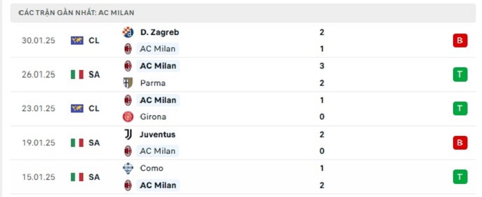 - Phong độ AC Milan