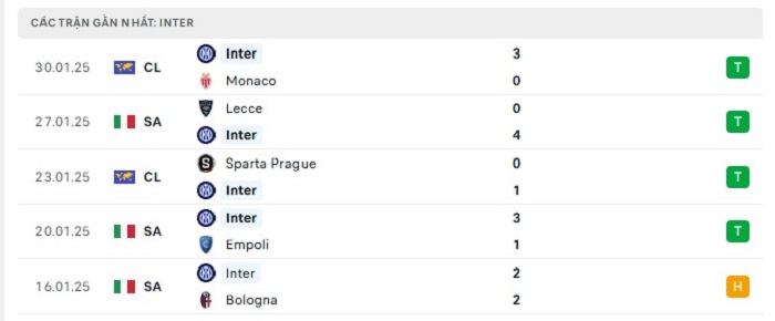 - Phong độ Inter Milan