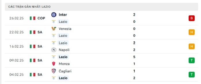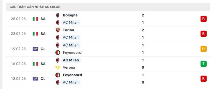 Bảng bóng đá trận đấu AC Milan vs Lazio