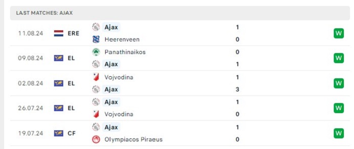 Phong độ gần đây Ajax Amsterdam vs Panathinaikos