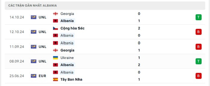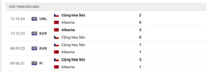 Bảng bóng đá trận đấu Albania vs CH Séc