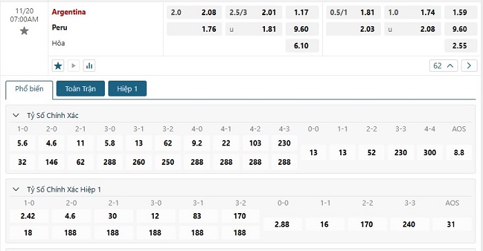 - Dự đoán tỉ số trận đấu Argentina vs Peru