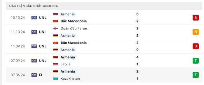 Phong độ gần đây Armenia vs Quần đảo Faroe