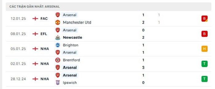 Bảng  bóng đá trận đấu Arsenal vs Aston Villa