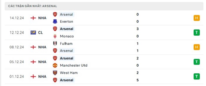 Bảng bóng đá trận đấu Arsenal vs Crystal Palace