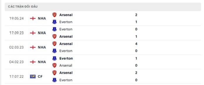 Bảng bóng đá trận đấu Arsenal vs Everton