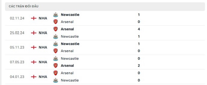 Bảng bóng đá trận đấu Arsenal vs Newcastle