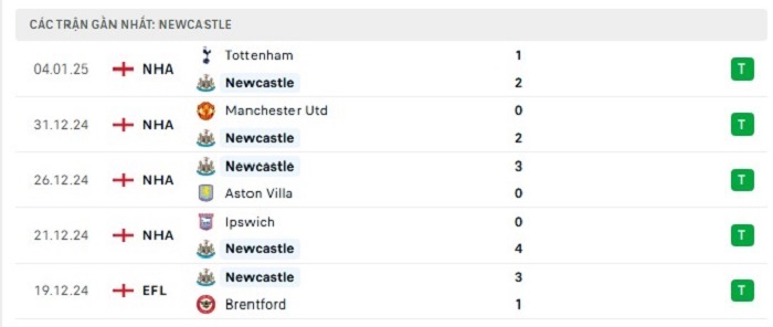 - Phong độ Newcastle