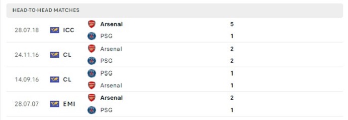 Quá khứ vẫn đang đứng về phía Arsenal khi họ đang có được thành tích bất bại trước Paris Saint Germain ở những lần gặp nhau trước đây, cụ thể là 4 lần gặp nhau gần nhất của hai đội thì Arsenal có được 2 trận thắng kèo châu Âu và 2 trận hoà. Dù phong độ hiện tại của cả Arsenal và Paris Saint Germain đều có thành tích bất bại trong 10 trận đấu gần nhất của mình nhưng với đại diện Premier League họ sẽ có được những lợi thế lớn hơn, do vậy mà đội chủ nhà hoàn toàn có thể có được một thắng lợi theo kèo châu Âu cả trận.