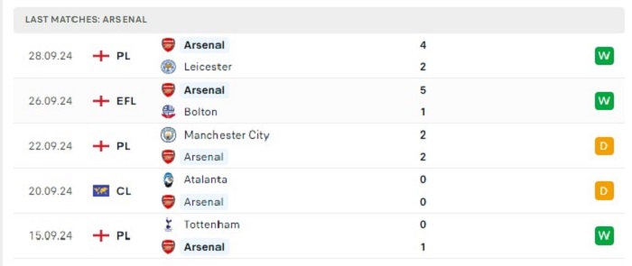 Phong độ gần đây Arsenal vs Paris Saint Germain