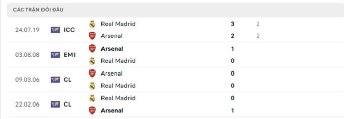 Thành tích trong quá khứ với Arsenal họ có được những thành công ấn tượng trước Real Madrid, cụ thể là 4 lần gặp nhau trước đây của hai đội thì đại diện bóng đá Anh đang có bất bại trong 4 lần gặp nhau khi thắng 2 và hoà 2 trận đấu theo mốc kèo châu Âu cả trận. Nhưng dù vậy đó là thành tích trong quá khứ bởi thực lực của Real Madrid hiện nay không thể xem nhẹ khi họ là nhà đương kim vô địch giải đấu, do vậy mà với thực lực của mình hiện tại việc Real Madrid có một kết quả hoà kèo châu Âu trước Arsenal cũng là khả quan.