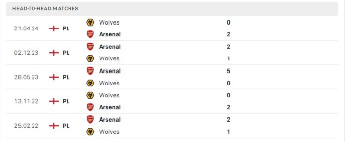 Lịch sử đối đầu của Arsenal vs Wolverhampton