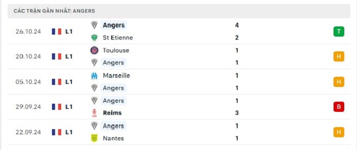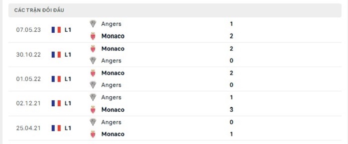 Bảng  bóng đá trận đấu AS Monaco vs Angers