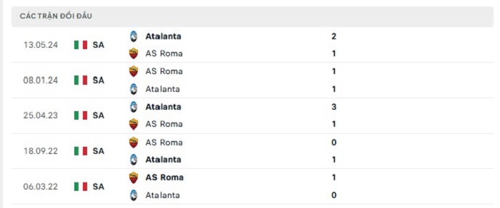 Quá khứ cũng không hề đứng về phía AS Roma trong những lần gặp Atalanta nhiều năm qua, bằng chứng chính là 10 lần gặp nhau gần nhất đội bóng thủ đô chỉ có thể thu về được 2 trận thắng và 2 trận hoà trong khi thua 6 trận đấu theo kèo châu Âu trước Atalanta, điều này cũng có thể nhận thấy được sự tiếp bộ vượt bậc của Atalanta trong những năm qua tại đấu trường quốc nội, đây cũng là lý do quan trọng để có thể đặt niềm tin vào một thắng lợi của đội khách theo kèo châu Âu của trận.