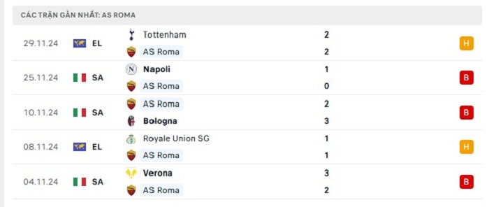 - Phong độ AS Roma
