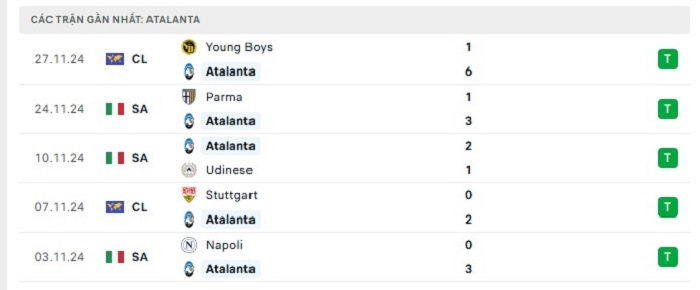 - Phong độ Atalanta