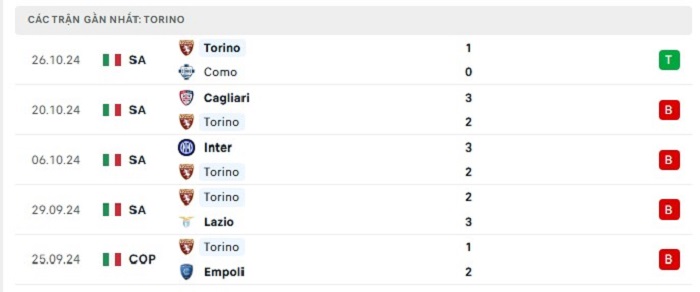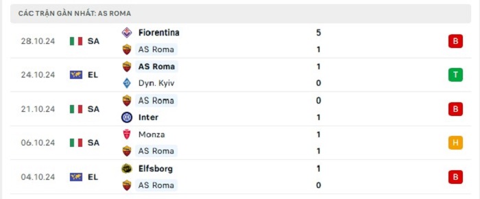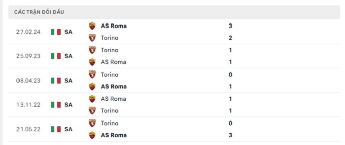 Bảng  bóng đá trận đấu AS Roma vs Torino