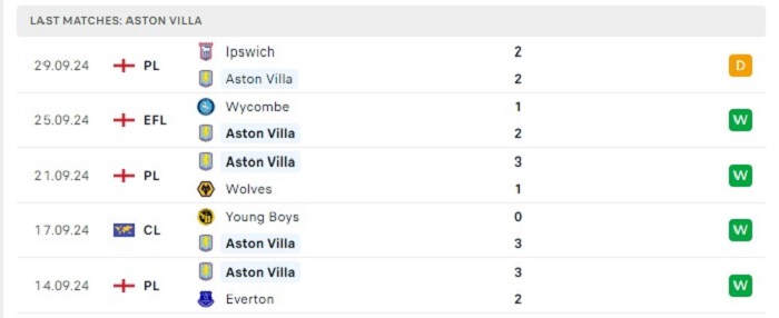 Phong độ gần đây Aston Villa vs Bayern Munich