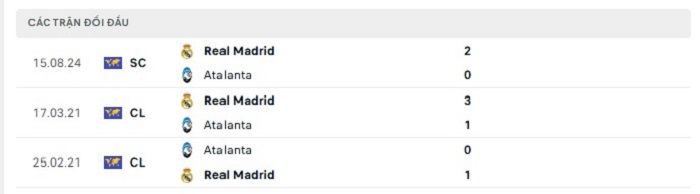 Lịch sử đối đầu của Atalanta vs Real Madrid
