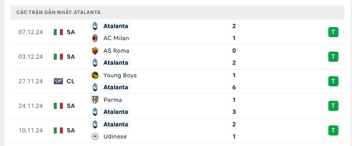 • Phong độ Atalanta