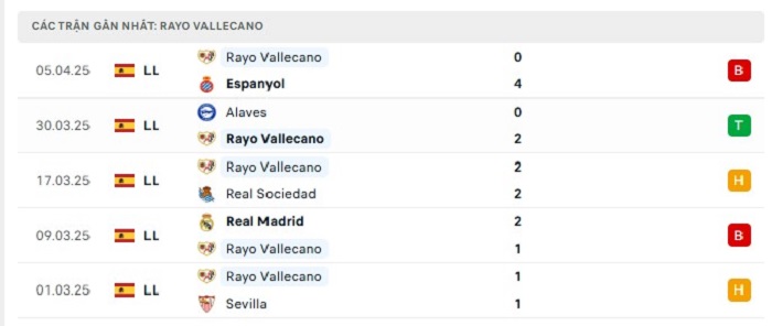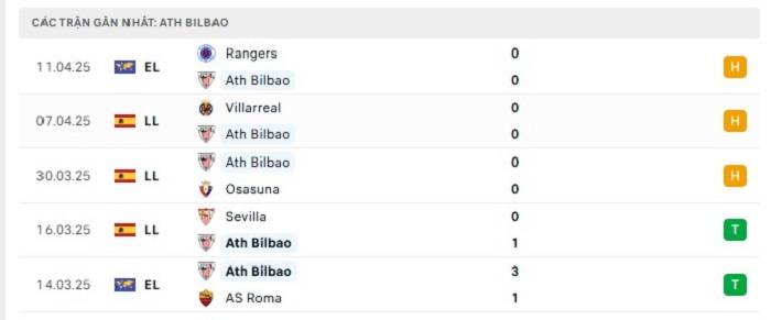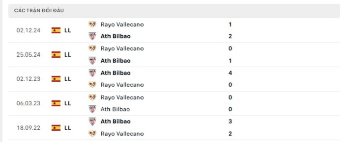 Phong độ gần đây Athletic Bilbao vs Rayo Vallecano