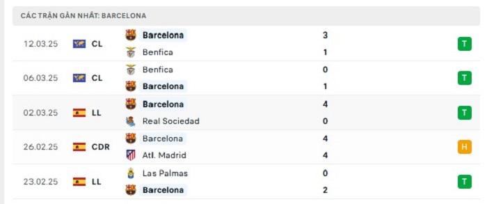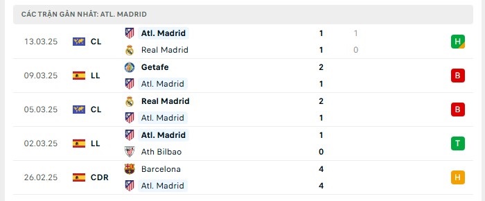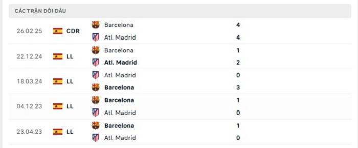 Phong độ gần đây Atletico Madrid vs Barcelona