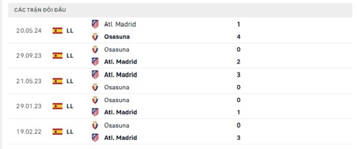 Bảng bóng đá trận đấu Atletico Madrid vs Osasuna