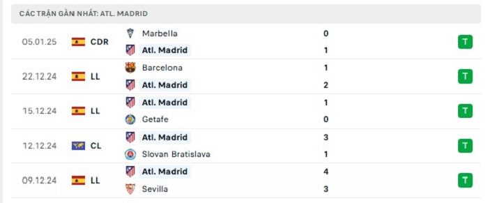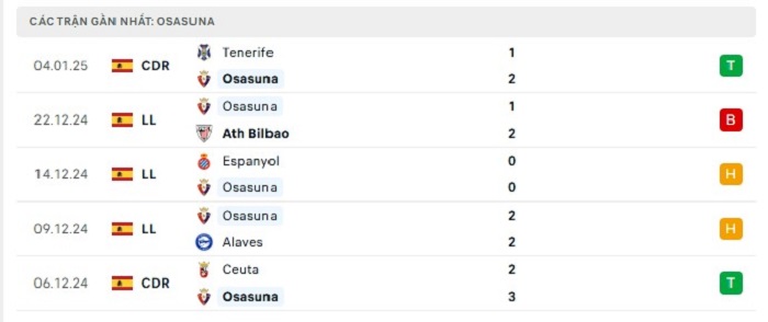 Phong độ gần đây Atletico Madrid vs Osasuna