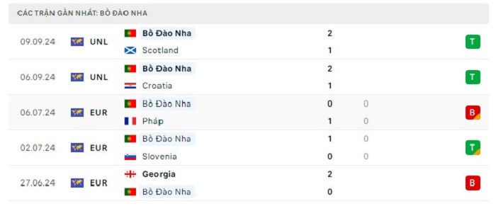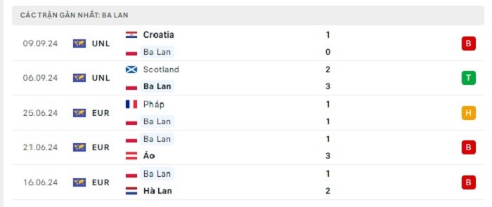 Phong độ gần đây Ba Lan vs Bồ Đào Nha