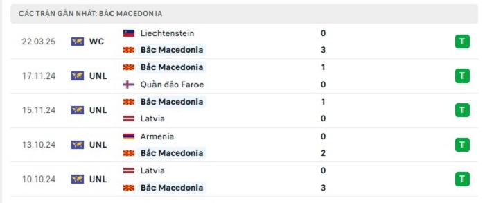 • Phong độ Bắc Macedonia