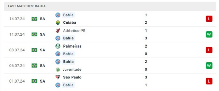 Phong độ gần đây Bahia vs Corinthians