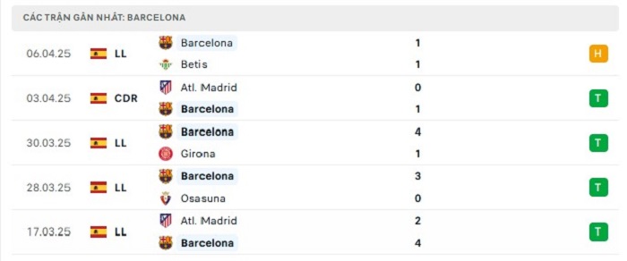 Phong độ gần đây Barcelona vs Borussia Dortmund