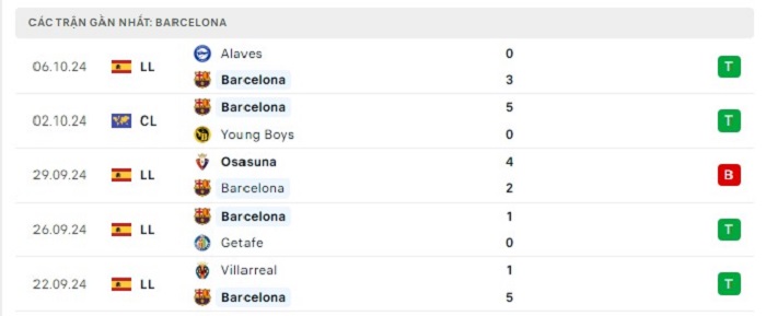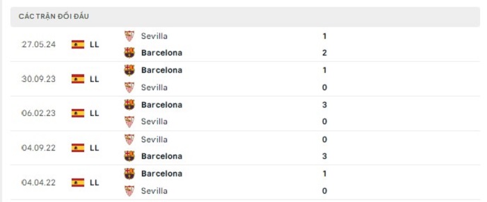 Bảng bóng đá trận đấu Barcelona vs Sevilla