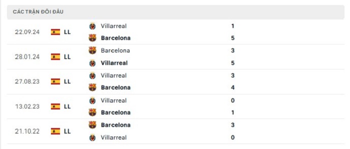 Phong độ gần đây Barcelona vs Villarreal