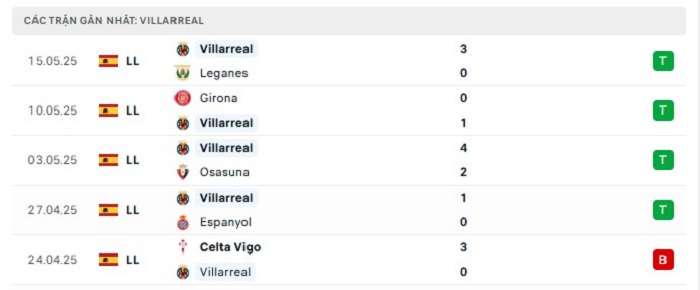 - Phong độ Villarreal