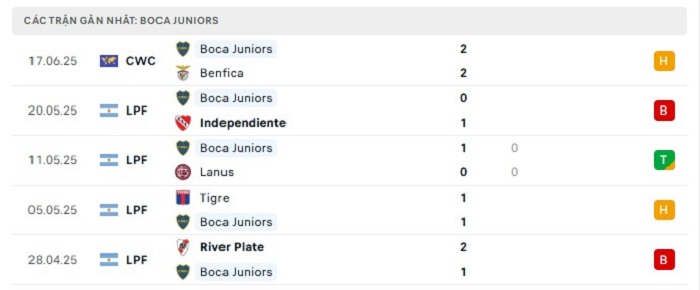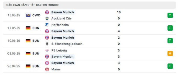 Phong độ gần đây Bayern Munich vs Boca Juniors
