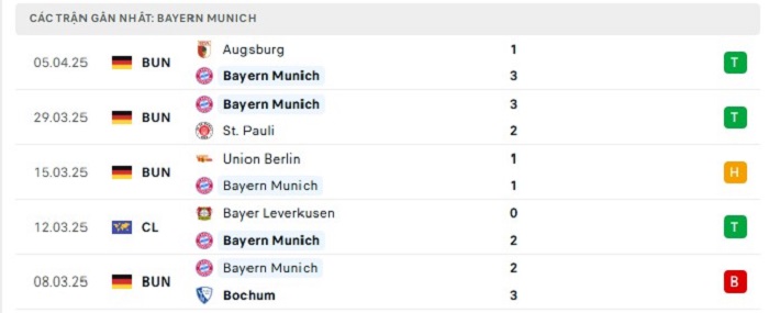 - Phong độ Bayern Munich