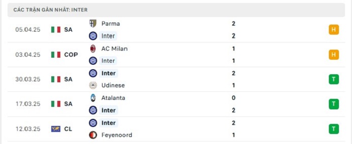- Phong độ Inter Milan