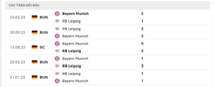 Bảng bóng đá trận đấu Bayern Munich vs RB Leipzig