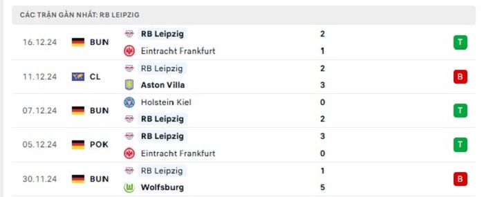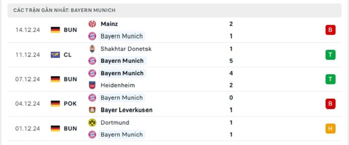 Phong độ gần đây Bayern Munich vs RB Leipzig