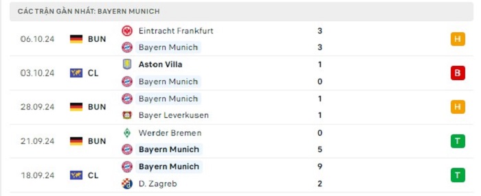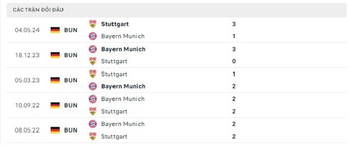 Phong độ gần đây Bayern Munich vs Stuttgart