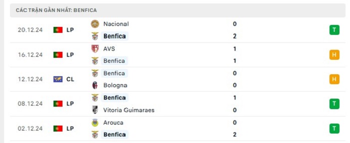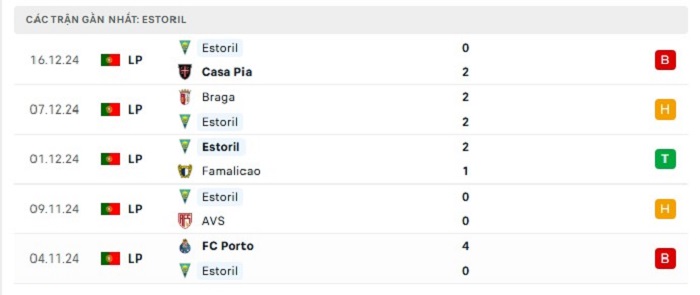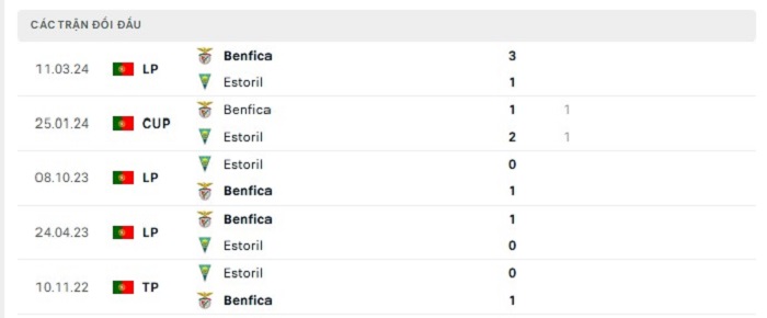 Bảng bóng đá trận đấu Benfica vs Estoril