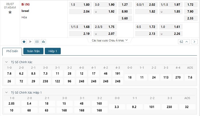 Soi kèo châu Á, kèo chấp Bỉ vs Israel