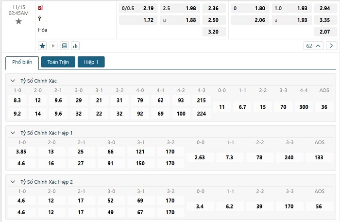 Soi kèo châu Á, kèo chấp Bỉ vs Italia