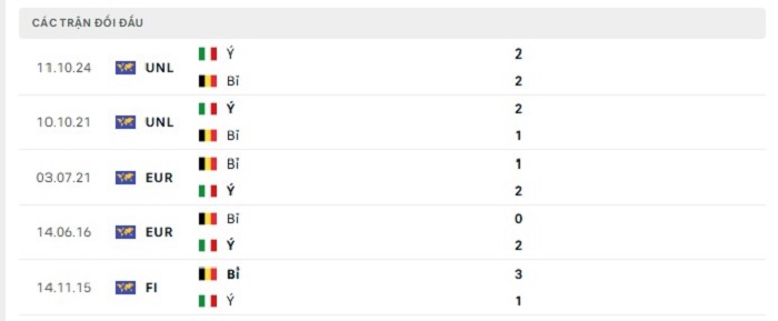 Trong quá khứ những trận đối đầu giữa Bỉ và Italia vốn cũng thường tạo nên được sự kịch tính và hấp dẫn với nhiều bàn thắng ghi được, cụ thể là 4 trong 5 trận gặp nhau gần đây của hai đội cũng đã xuất hiện từ 3 bàn thắng ghi được trở lên. Hàng công của cả Bỉ và Italia đều thi đấu tốt nhưng về khả năng phòng ngự tại Nations League không thực sự hiệu quả, do vậy mà trận đấu sắp tới của hai đội hoàn toàn có thể xuất hiện tỷ số cao ghi được trong trận.