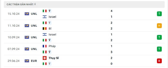 Bảng bóng đá trận đấu Bỉ vs Italia