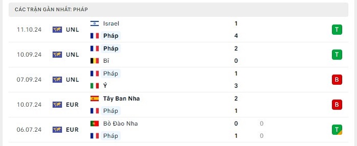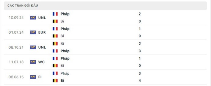 Bảng bóng đá trận đấu Bỉ vs Pháp