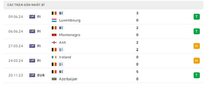 Phong độ gần đây Bỉ vs Slovakia